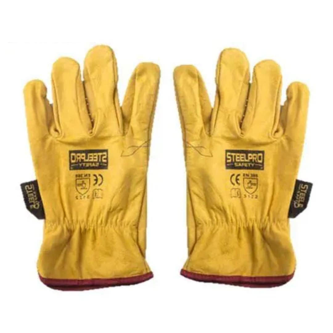 Guantes de badana amarillo – Steelpro, guante en base a cuero badana que permite confort y maniobrabilidad en el uso, ideal para el trabajo de maquinistas y mantenimiento en general donde se requiera proteger de riesgos mecánicos medios y bajos.